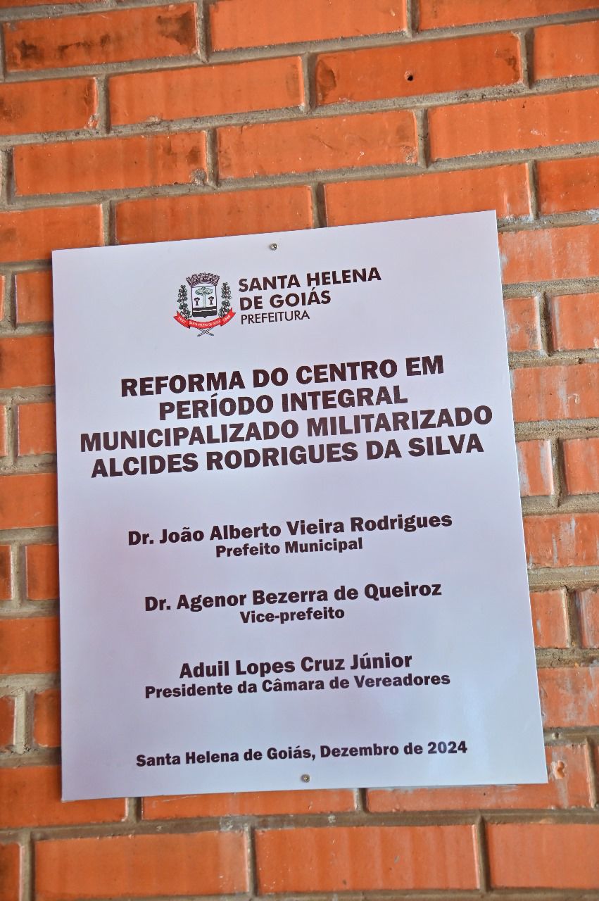 Hoje, entregamos a reforma do Centro de Período Integral Municipal Militarizado Alcides Rodrigues da Silva, um marco para a educação de Santa Helena.