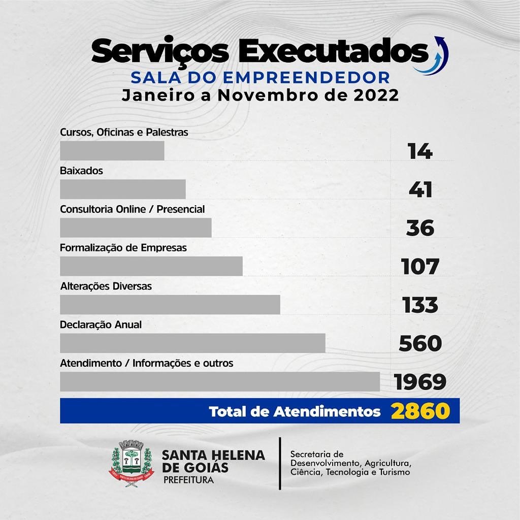 Você sabia que a Prefeitura de Santa Helena de Goiás possui a Sala do Empreendedor?Veja a seguir alguns dados de nossos atendimentos, no período de Janeiro a Novembro de 2022.