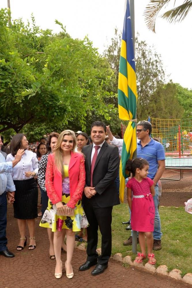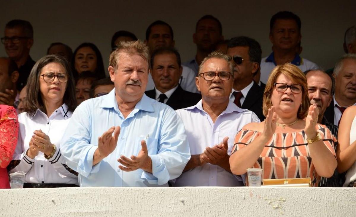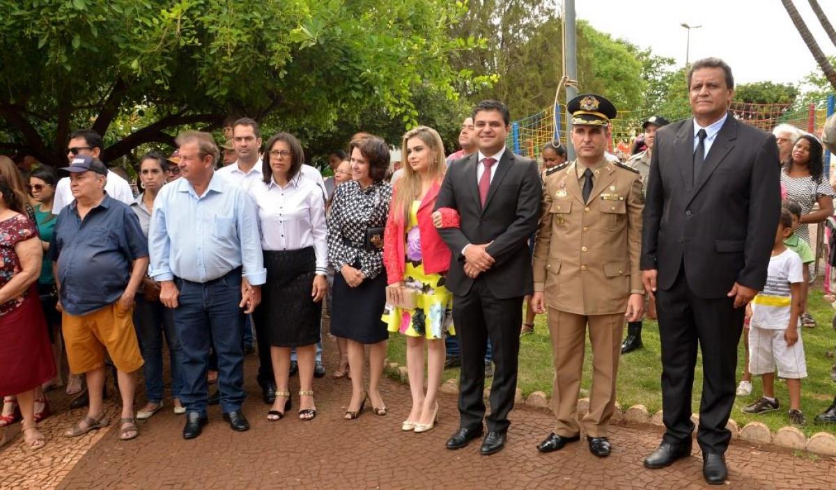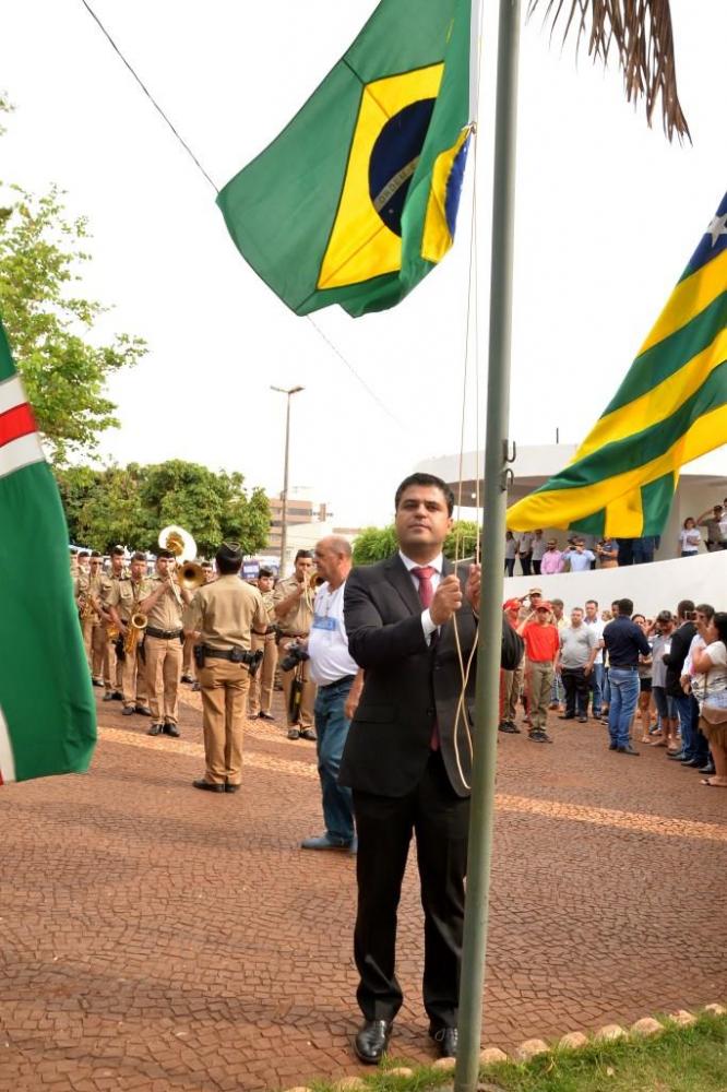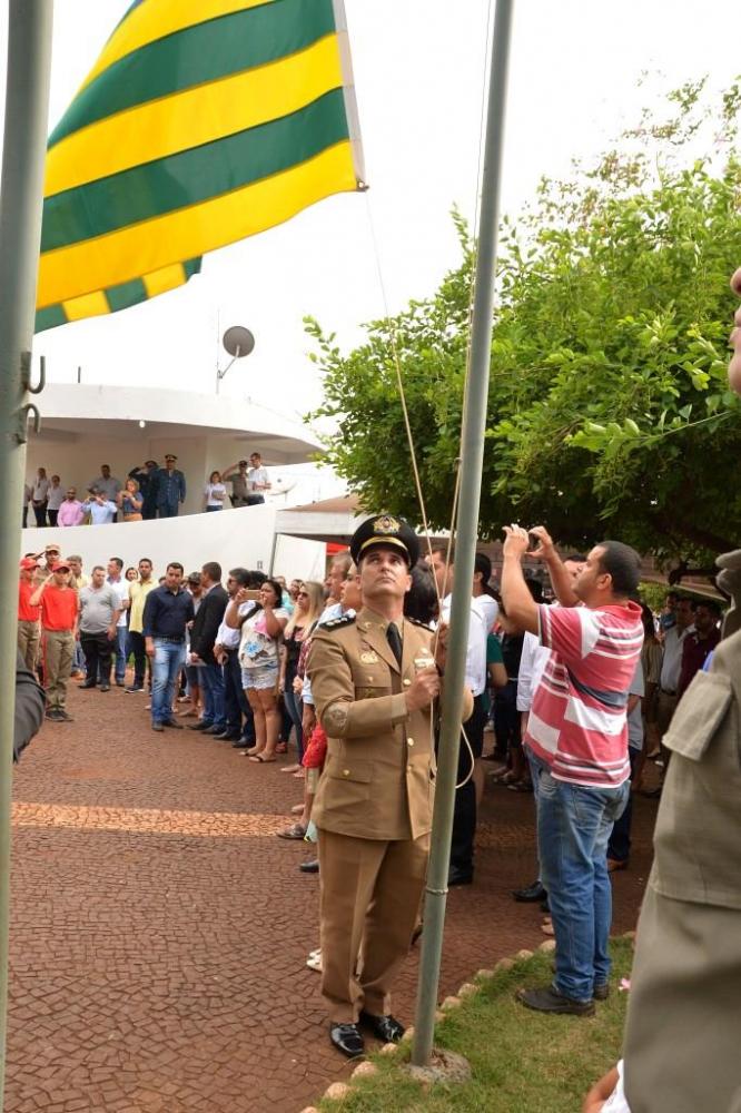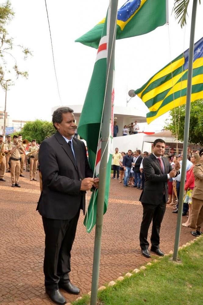 Primeiramente, houve o hasteamento das bandeiras (Brasil – Prefeito Dr. João Alberto, Estado – Ten. Cel. Jeovaldo e Município – Pres. da Câmara Gilmar) acompanhado pelo Hino Nacional orquestrado pela Polícia Militar.