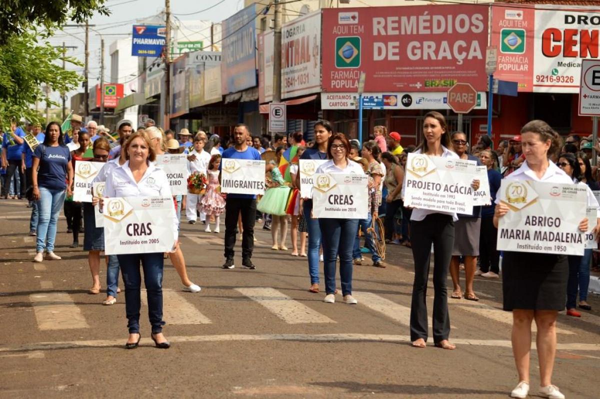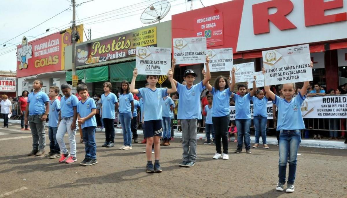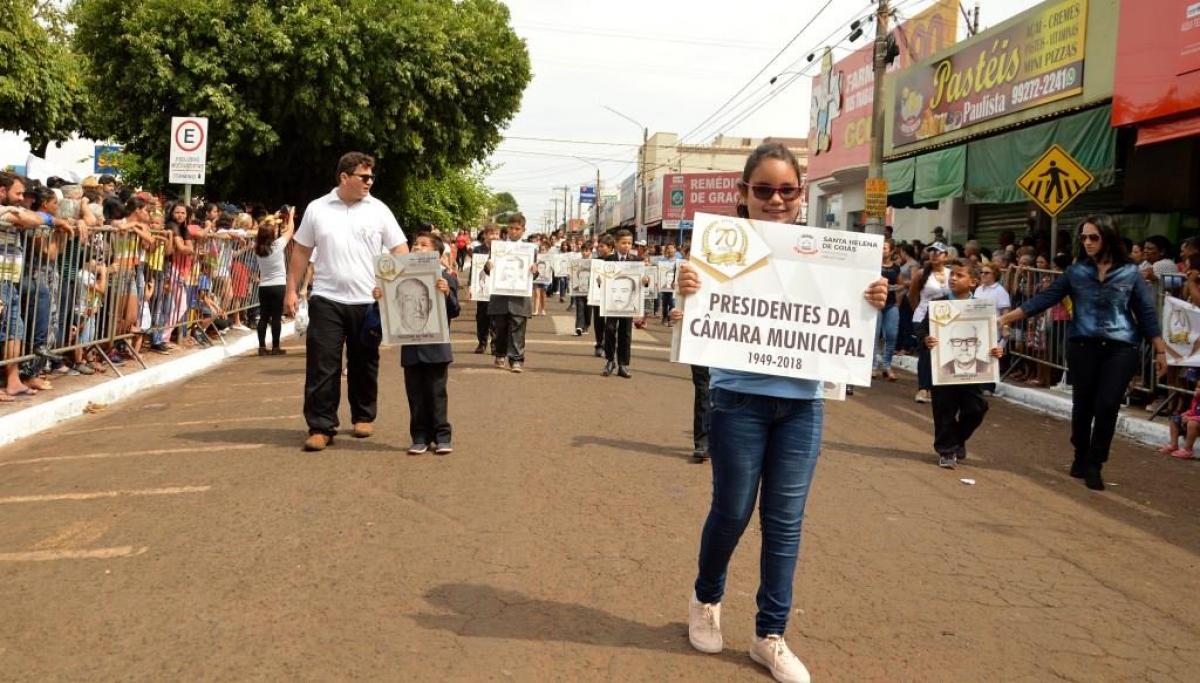 Como parte das nossas tradições, os santa-helenenses compareceram em peso à Praça Pedro Ludovico Teixeira (Matriz), no dia 20 de Outubro, para assistirem ao Desfile Cívico em comemoração ao aniversário de nossa cidade.