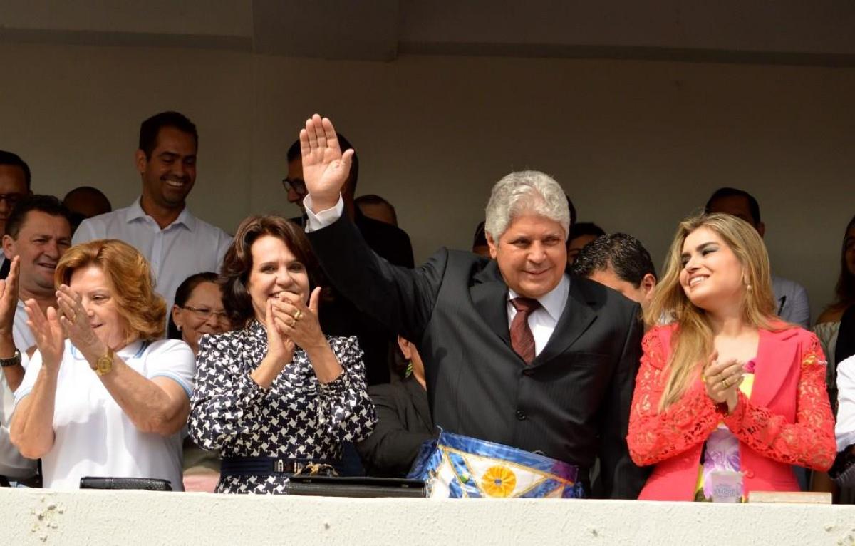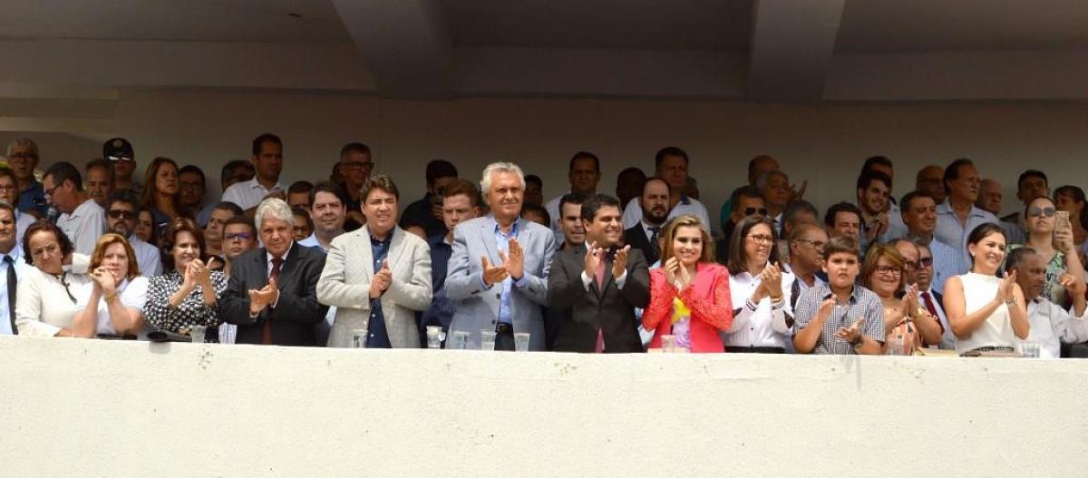 Ronaldo Caiado discursou agradecendo o convite por estar prestigiando o maravilhoso desfile e a votação maciça que teve em nossa cidade, falou sobre a amizade entre o nosso prefeito e o deputado federal eleito, Alcides Rodrigues Filho, acrescentou que a partir de 2019 os laços entre o Estado e Santa Helena serão ainda mais estreitados e que tem muitos planos pra a nossa cidade, fez a doação de um ônibus e enalteceu muitas coisas positivas sobre seu próximo plano de governo.