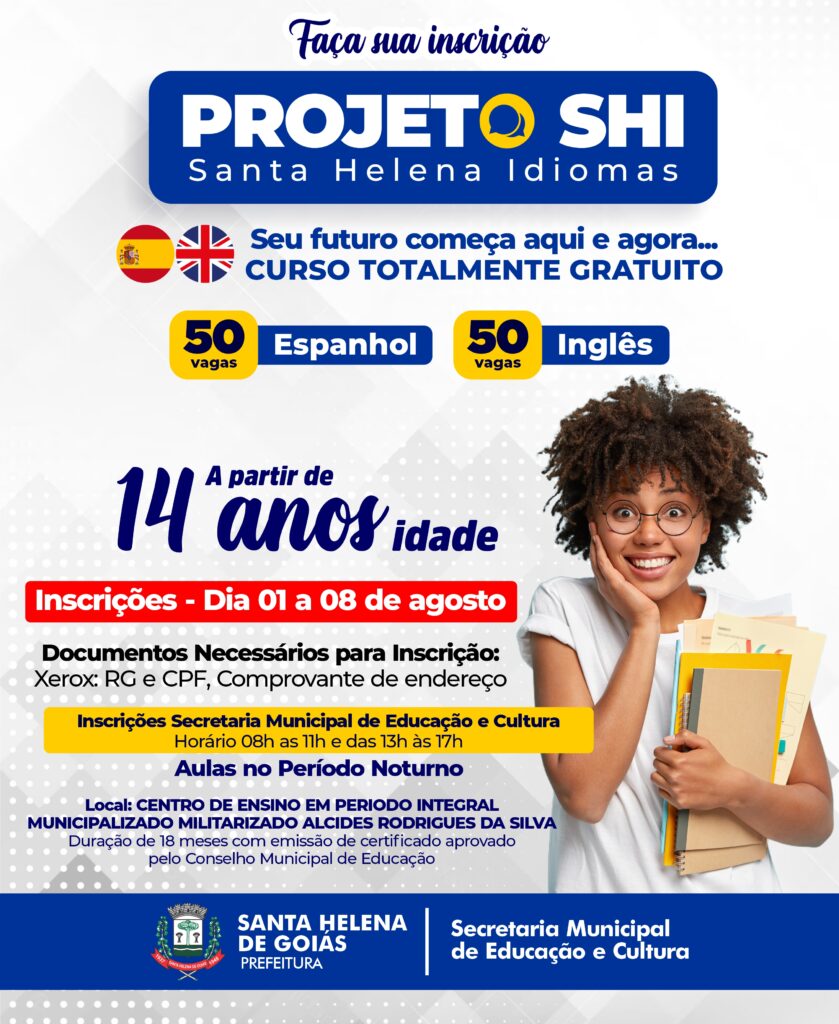 Mais oportunidades para você que tem procurado se inscrever no Projeto Santa Helena Idiomas.