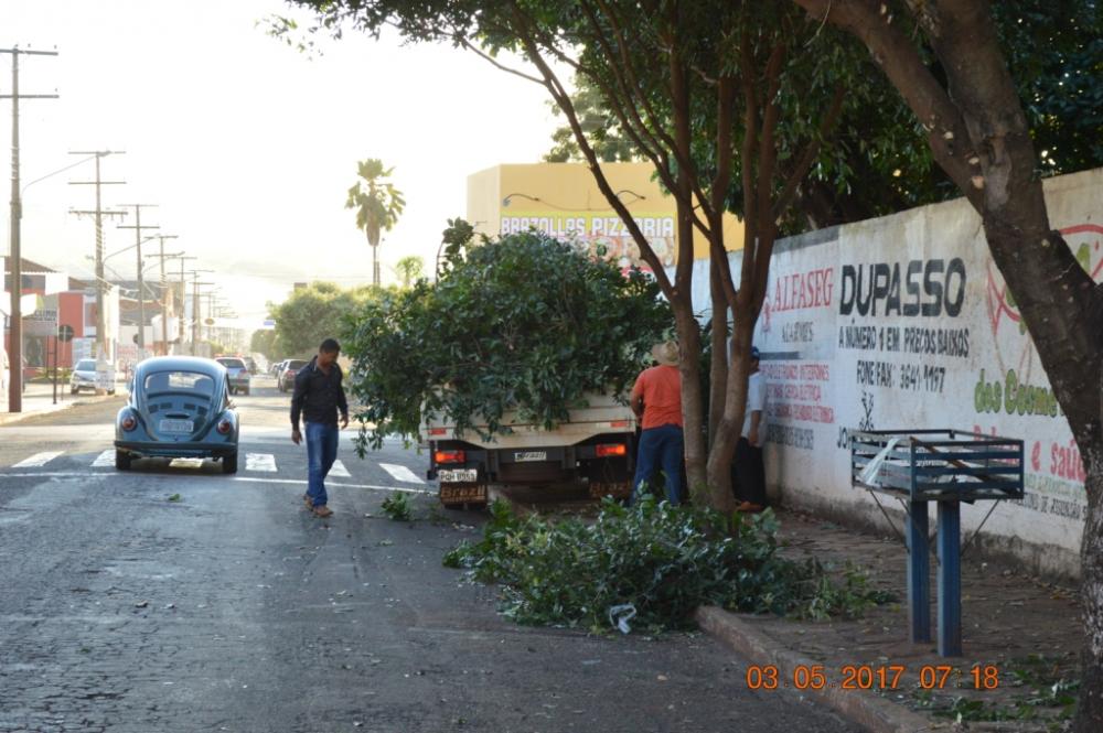 Podas de árvores próximo ao Colégio Estadual Vital de Oliveira;