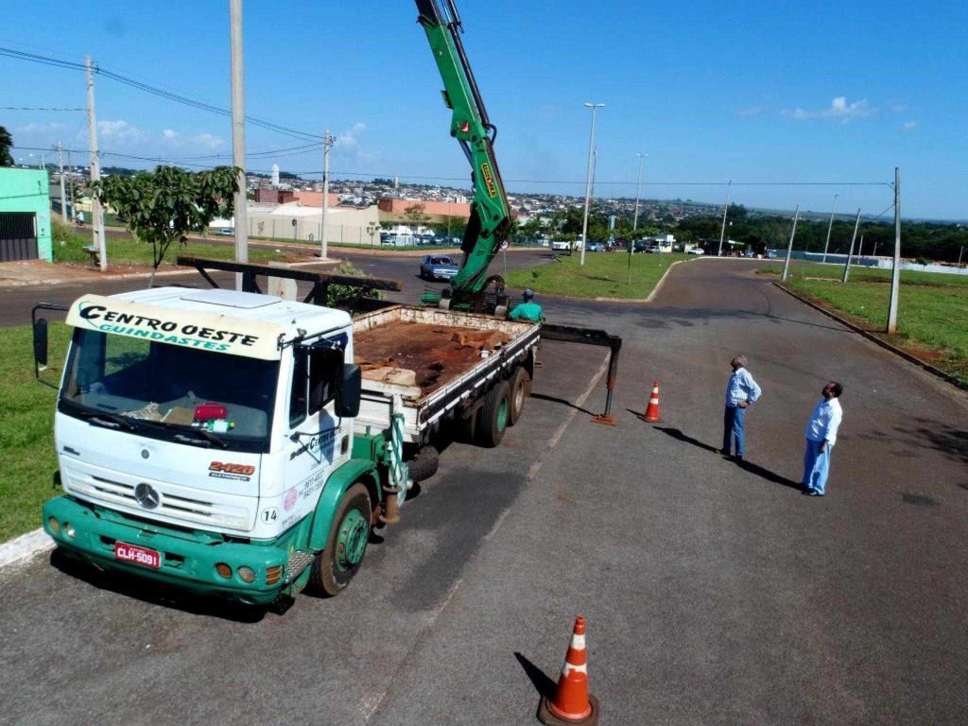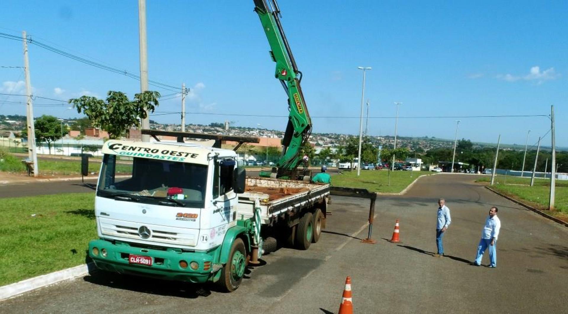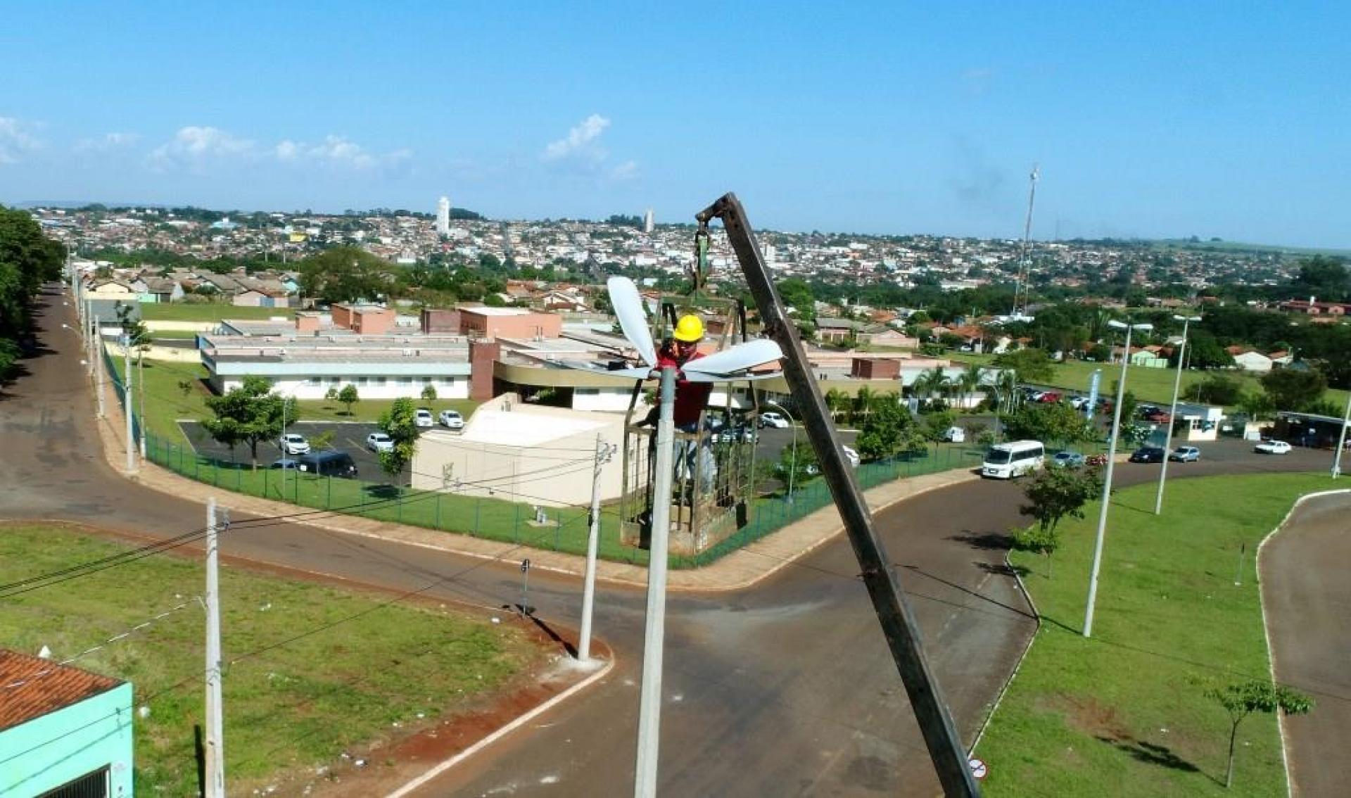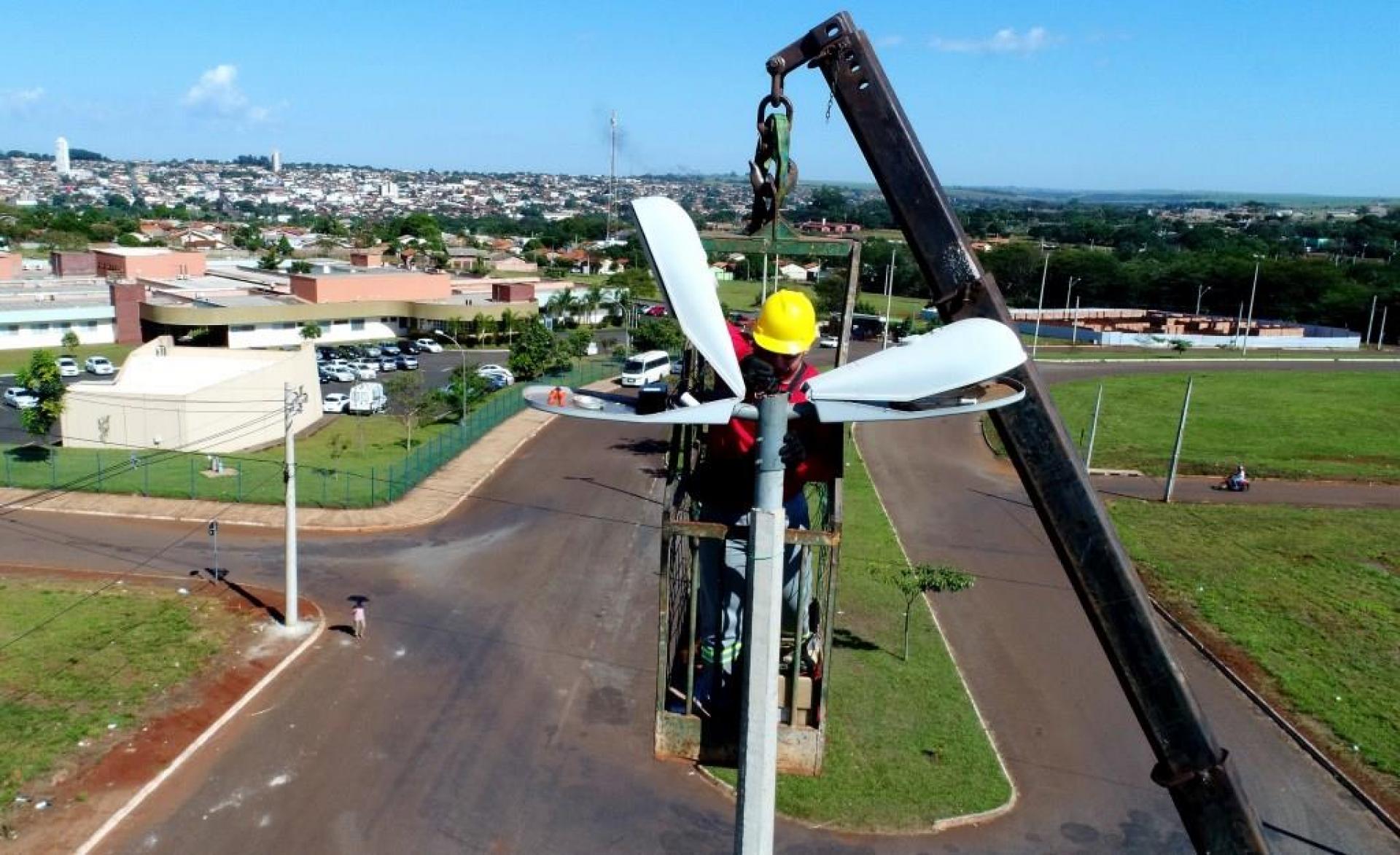 Um caminhão munck com cesto aéreo de maior capacidade de altura está na nossa cidade fazendo a troca de lâmpadas de difícil alcance em inúmeros locais. Pelos bairros, outras lâmpadas também estão sendo trocadas e passando por manutenção.