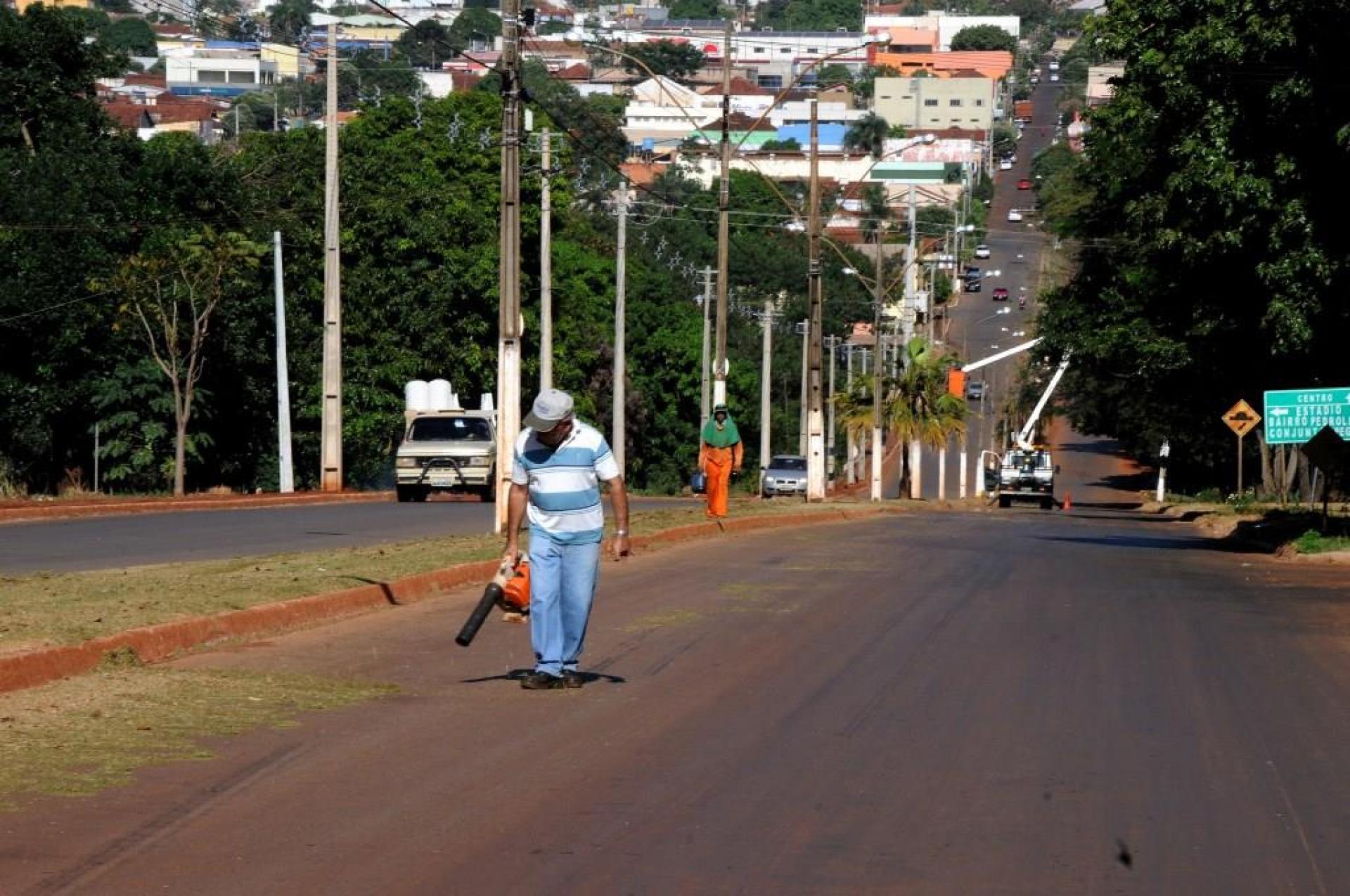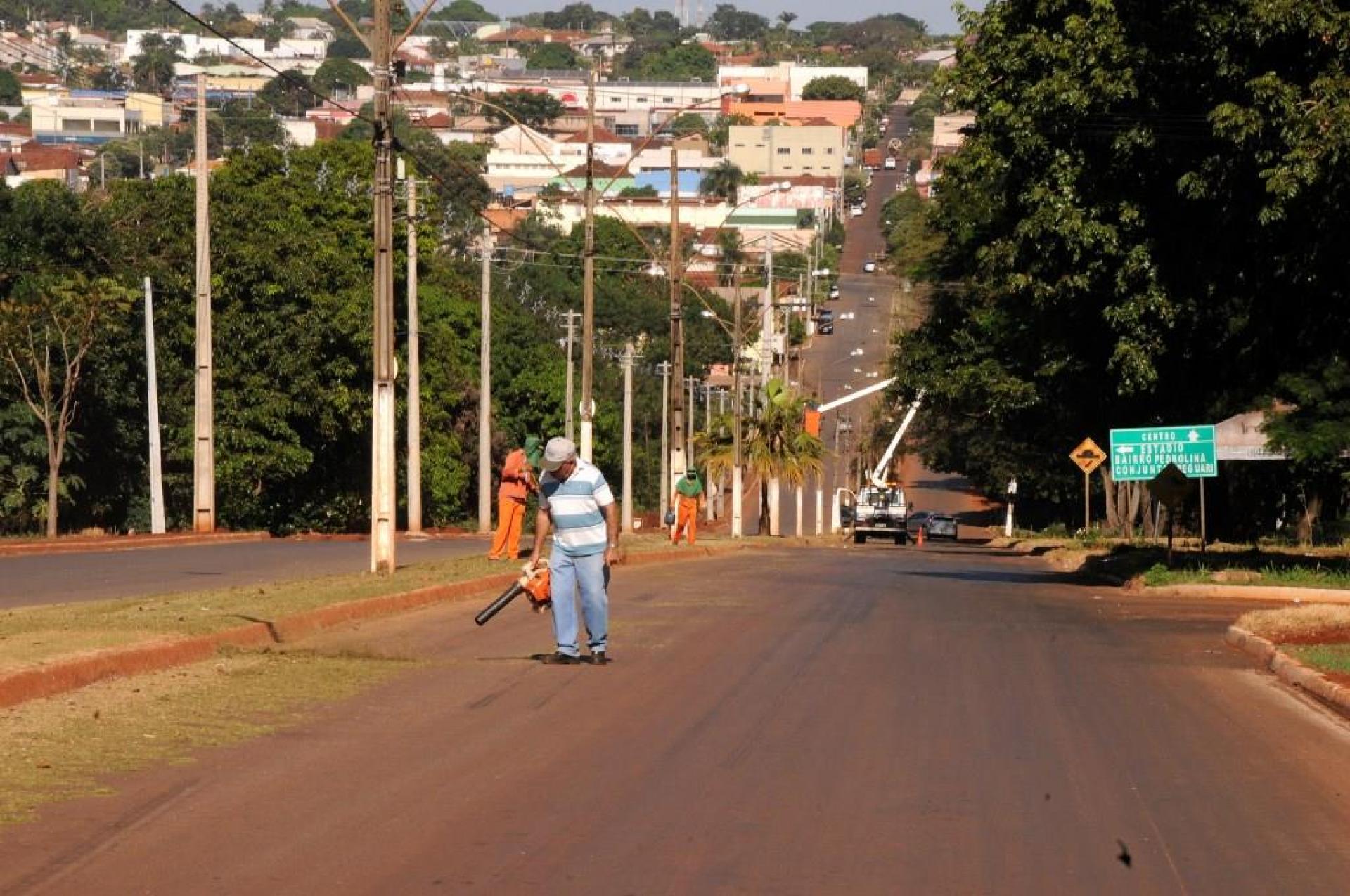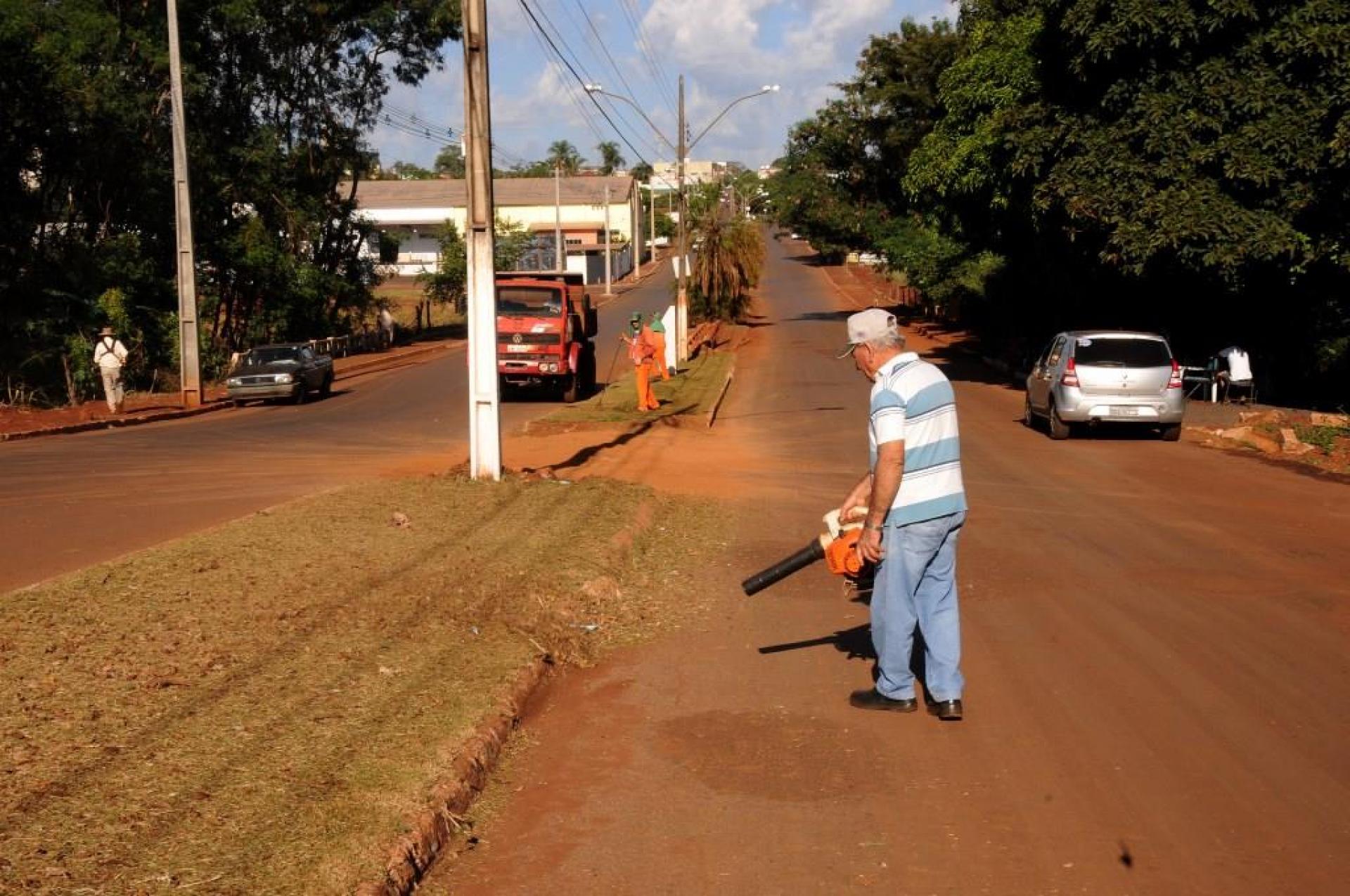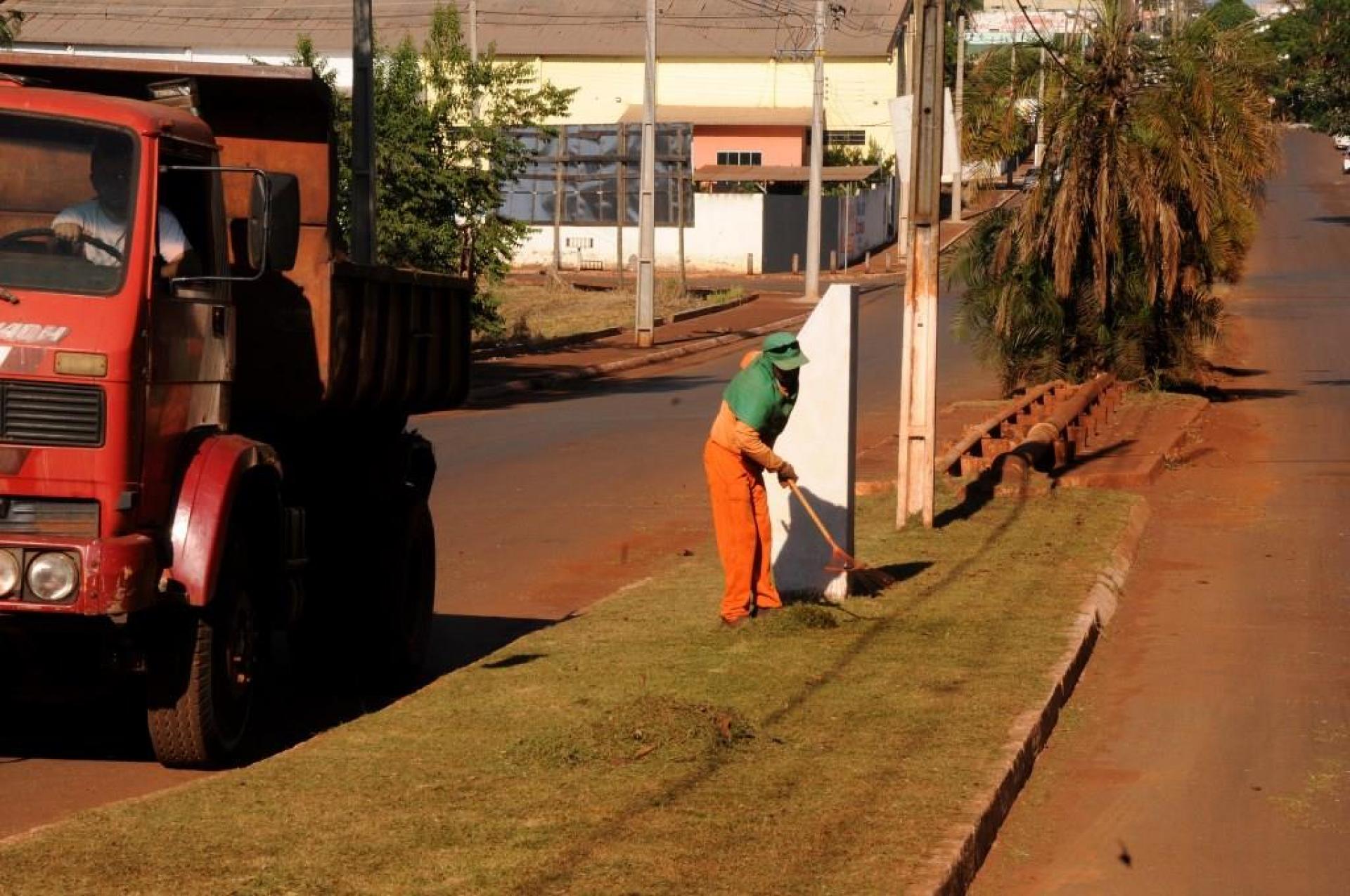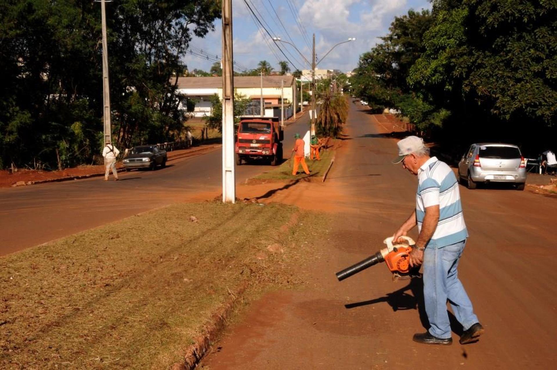 Atividades de limpeza urbana como: podas de árvores, capinagem, roçagem e outras em diversos bairros da cidade.