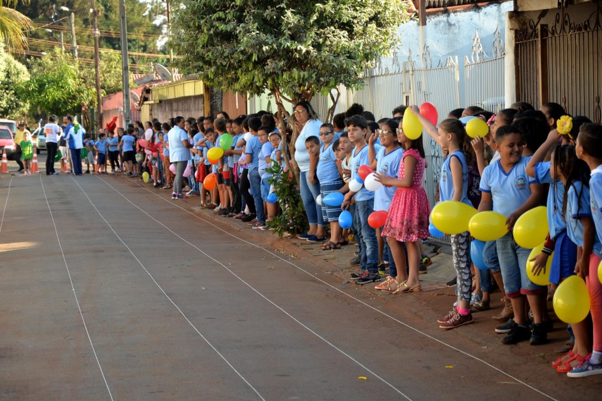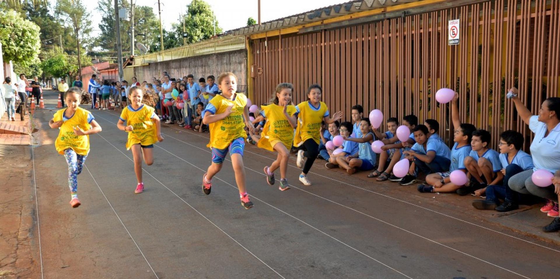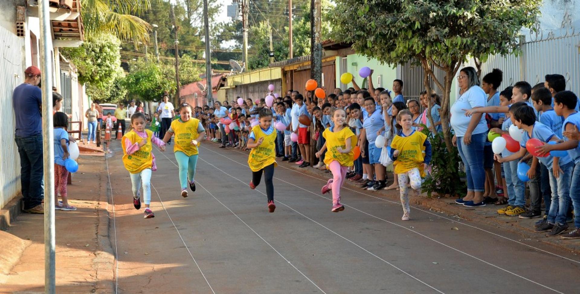 A Prefeitura de Santa Helena de Goiás, por meio da Secretaria de Educação e Cultura (Semec), está realizando no dia de hoje (06), nas Escolas Municipais Valeriano Rodrigues I e II, as provas do Projeto Atletismo na Escola.     O projeto, que é coordenado pelos professores de Educação Física, tem participação também dos educadores, coordenadores e gestores e está atingindo todas as unidades escolares do nosso município, visando promover despertar nos estudantes hábitos saudáveis: físicos, morais, tais como: disciplina, interação, respeito, competitividade, integração, motivação e outros. Fazendo assim, que o aluno aumente seu enriquecimento pessoal.   Na ação da manhã de hoje, que aconteceu nas proximidades da escola, que fica no bairro Alvorada, centenas de crianças participaram da corrida rasa com premiação de medalhas para os três primeiros lugares. O Corpo de Bombeiros Militar, Agência Municipal de Trânsito (AMT), Superintendência de Esporte e equipe da Semec estiveram presentes.   Ascom PMSH Natalia Martins JP 2180 DRT GO Imagens de Manoel Paiva