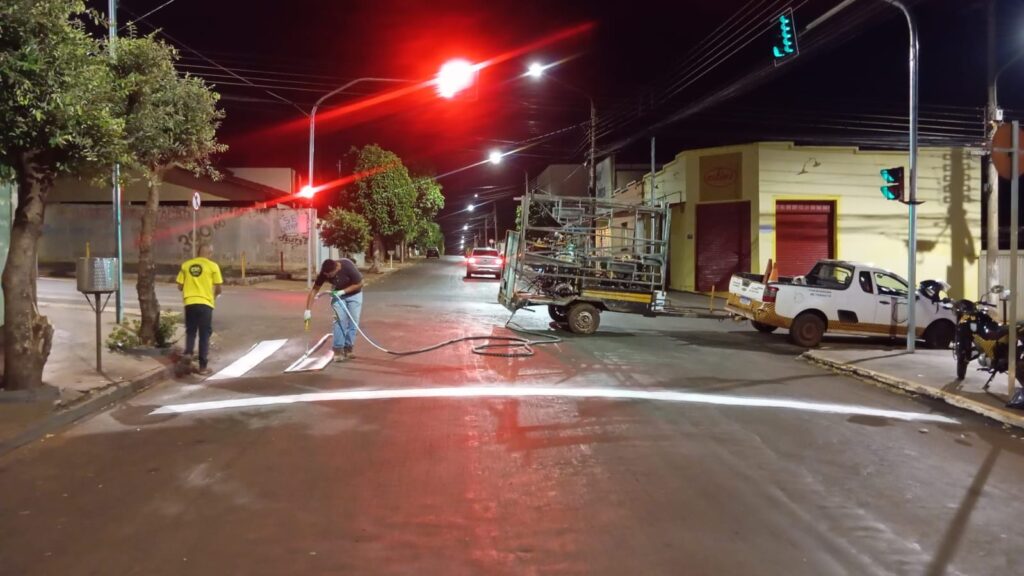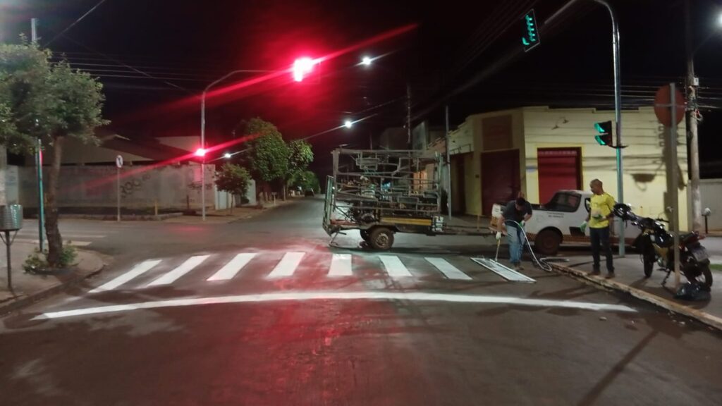A Secretaria da Guarda Municipal e Trânsito está realizando a sinalização horizontal na área central, começando pelas vinte esquinas com sinalização semafórica, onde cada uma terá quatro faixas de pedestres repintadas.