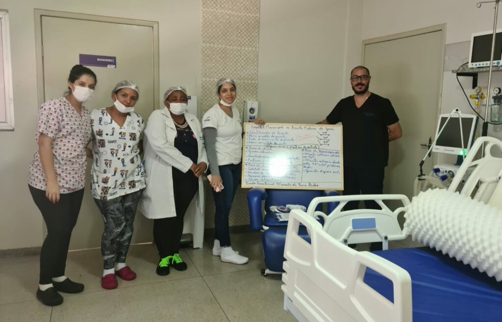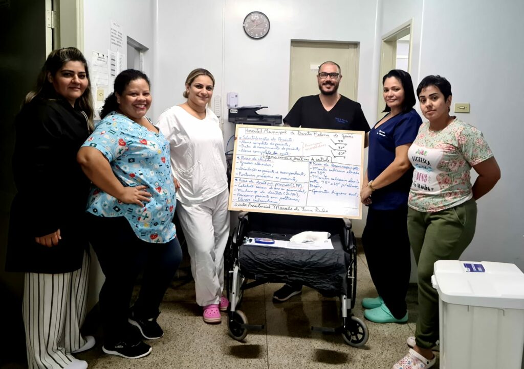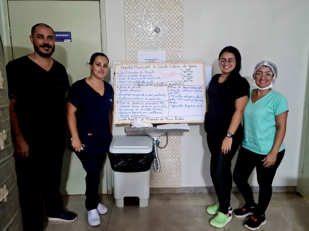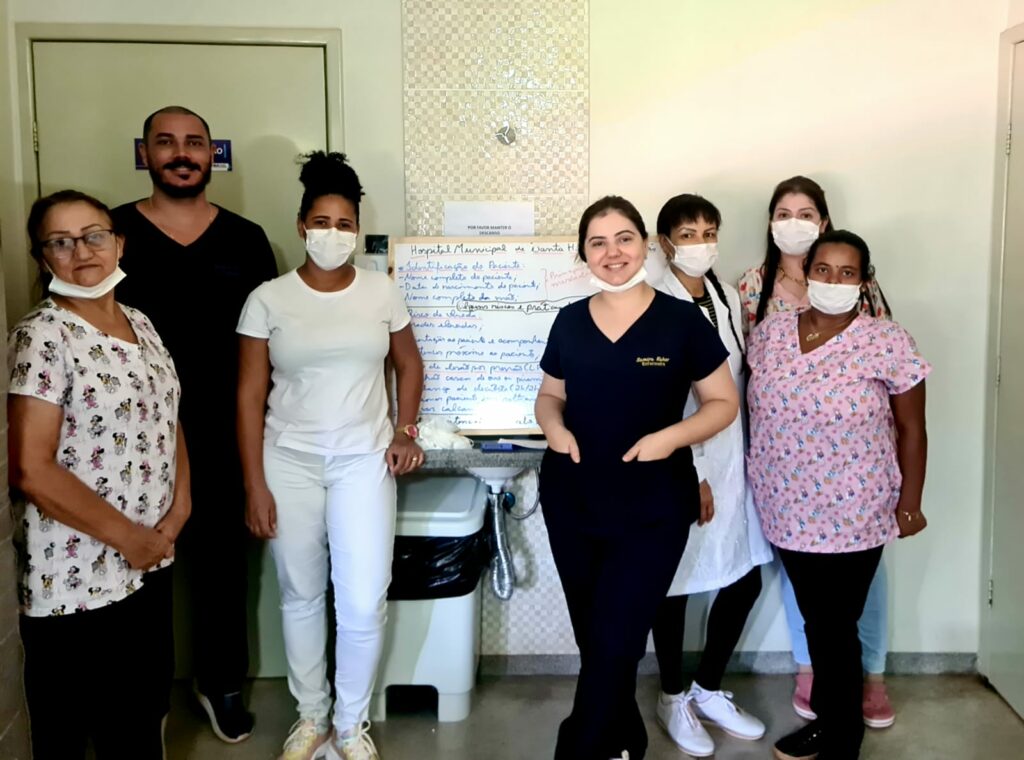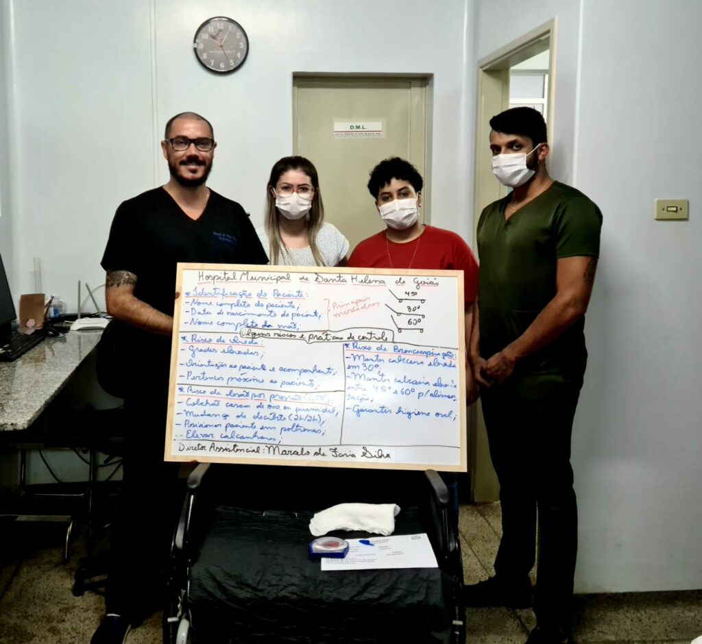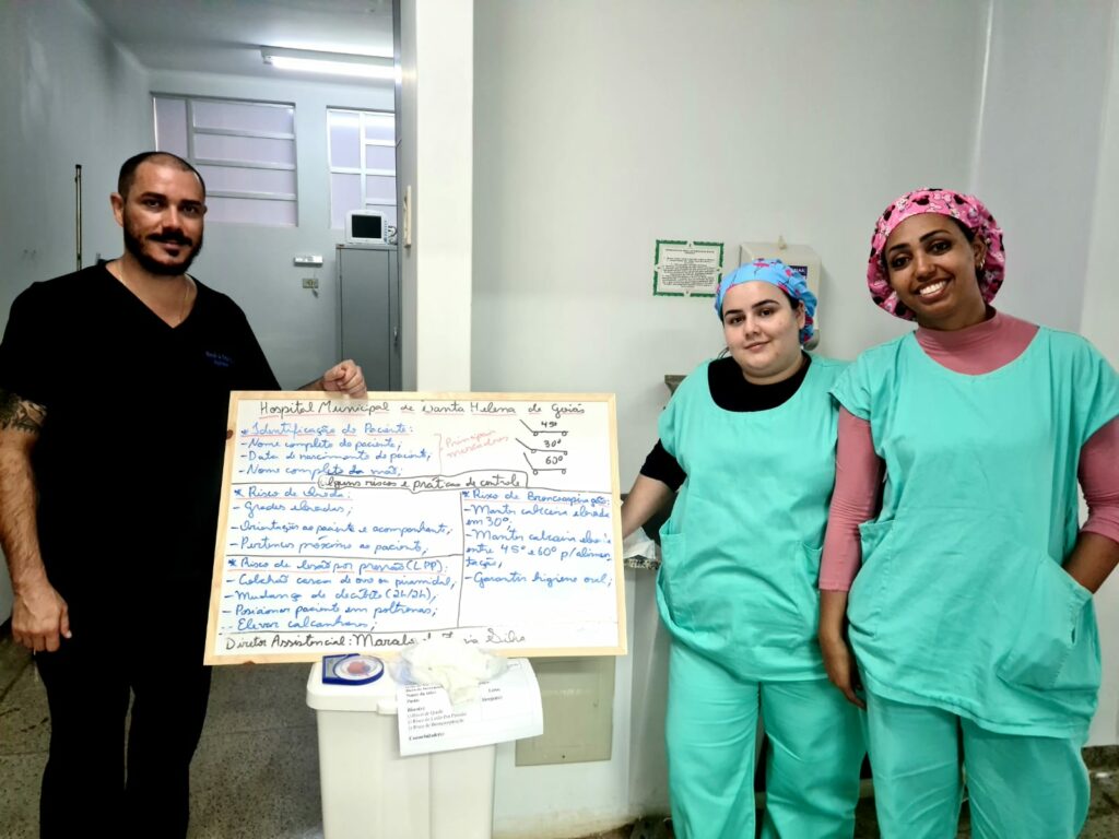 Treinamento (educação continuada) realizado pelo Diretor Assistencial Marcelo nos dias 06 e 07 de Fevereiro de 2023 para toda Equipe de Enfermagem do Hospital Municipal de Santa Helena de Goiás, voltado para a Qualidade e Segurança do Paciente sobre Identificação do Paciente (principais marcadores), Riscos e suas Práticas de Controle para Identificação e Prevenção de Queda, Lesão Por Pressão e Broncoaspiração.