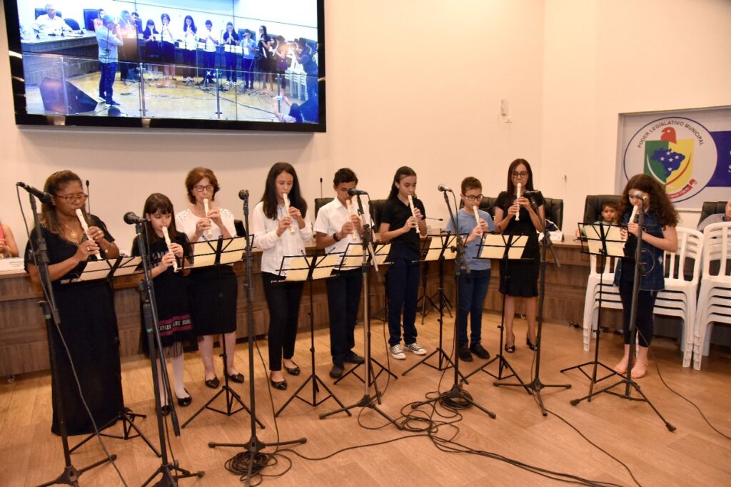 Aconteceu ontem, 01/06, na Câmara Municipal a oficina cultural realizada pelo " Projeto Harmonizando Vidas " que possui atualmente cerca de 390 alunos no aprendizado de técnica vocal, flauta doce, violino, violão, ukulele e instrumentos de sopro.