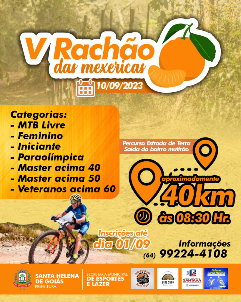 Dia 10 de setembro vai ter muita aventura e adrenalina na tradicional corrida ciclista Rachão das Mexericas em Santa Helena.